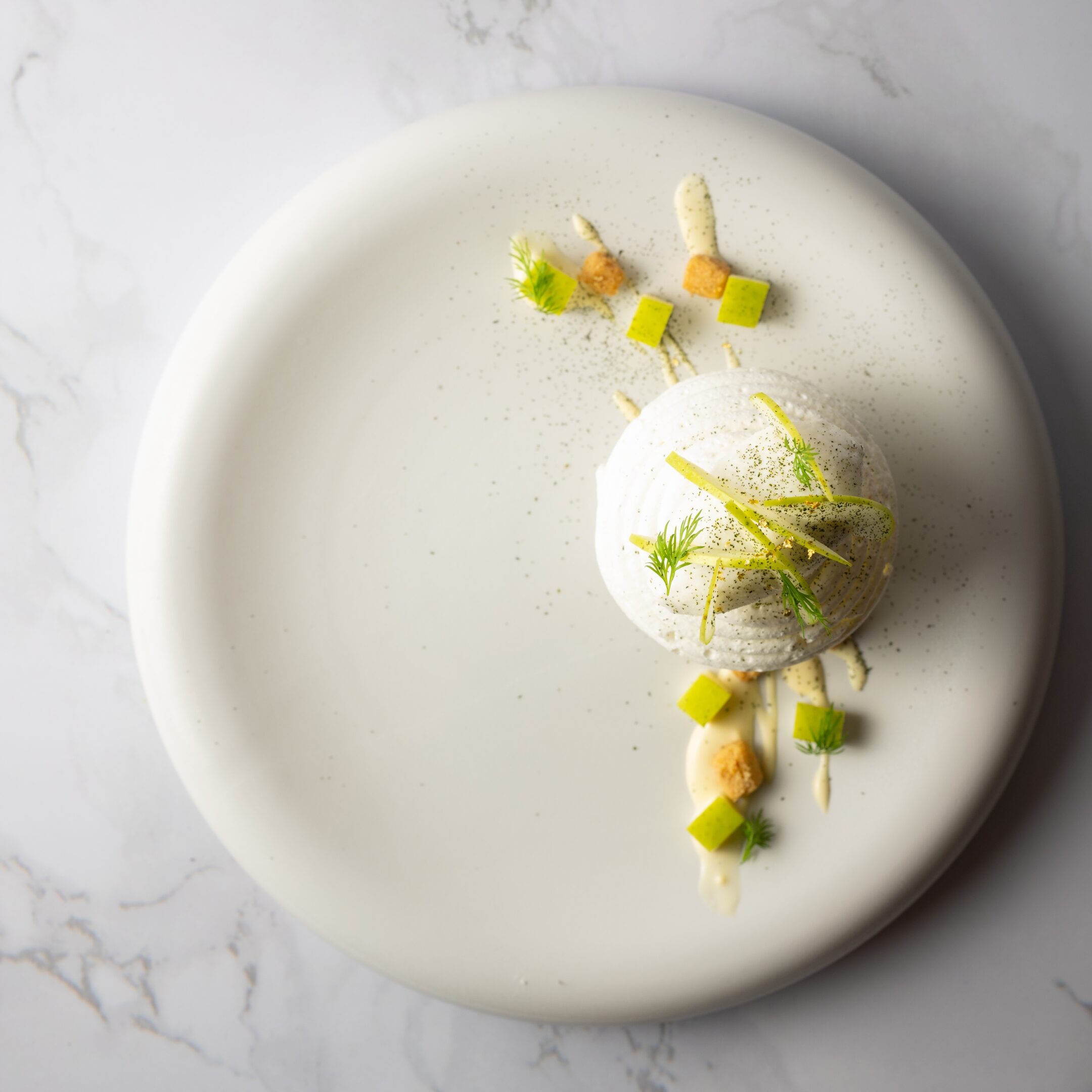 フルーツはもちろん野菜やフォアグラなどの食材を活かし、味と香りを組み立てたEMMEならではのデザート。デザートを目の前にしたときの印象や香り、口に運んだときに感じる味と鼻の奥に抜ける余韻まで楽しめるように考えて作っています。